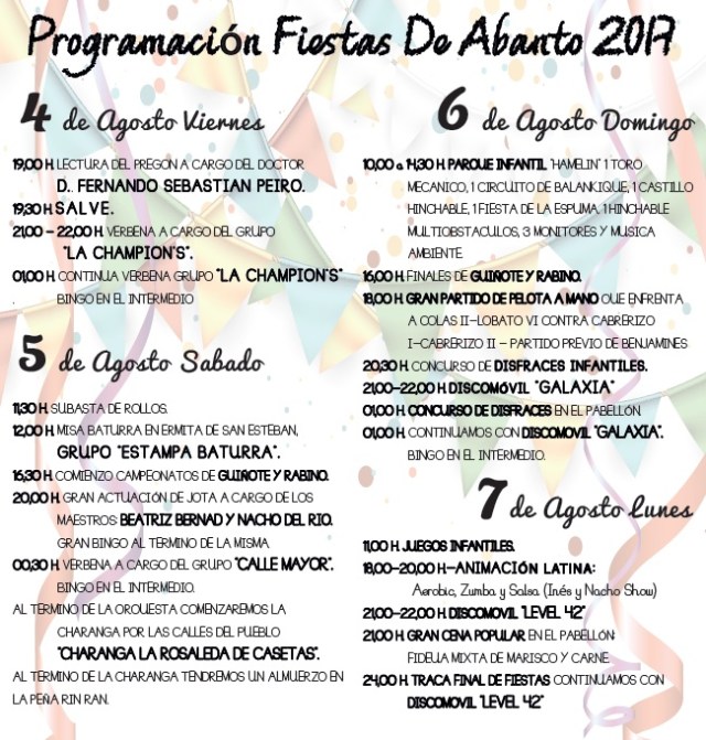 Víctor Sánchez, uno de los integrantes de la Peña Y Rin Ran, me manda el programa de actos elaborado por esta peña para las próximas fiestas de San Esteban en Abanto.