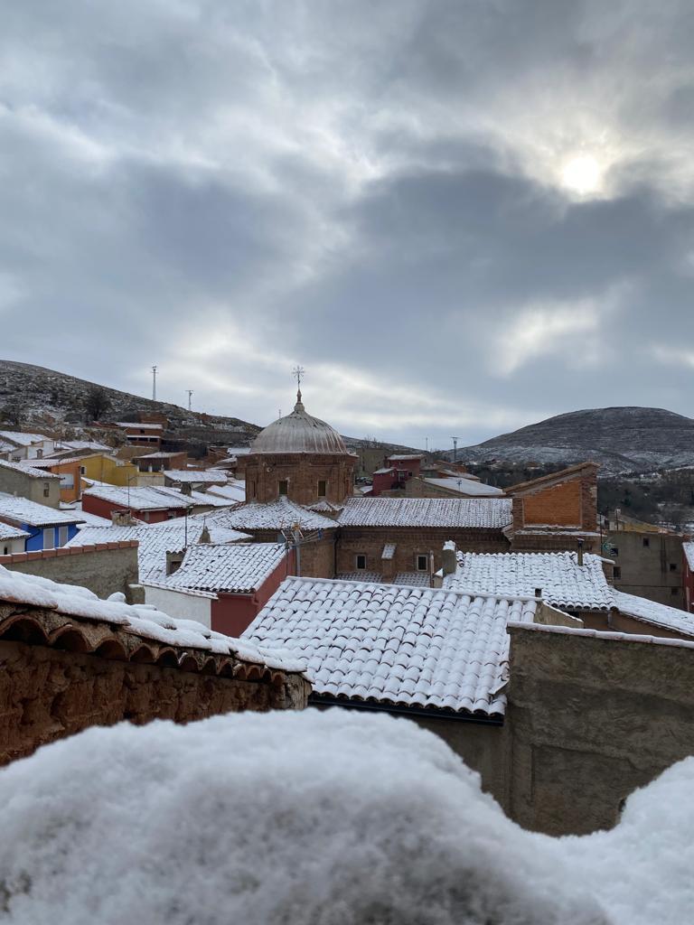 Pili Aldea nos comparte unas cuantas imágenes de la nieve que ha hecho acto de presencia hoy en Abanto.