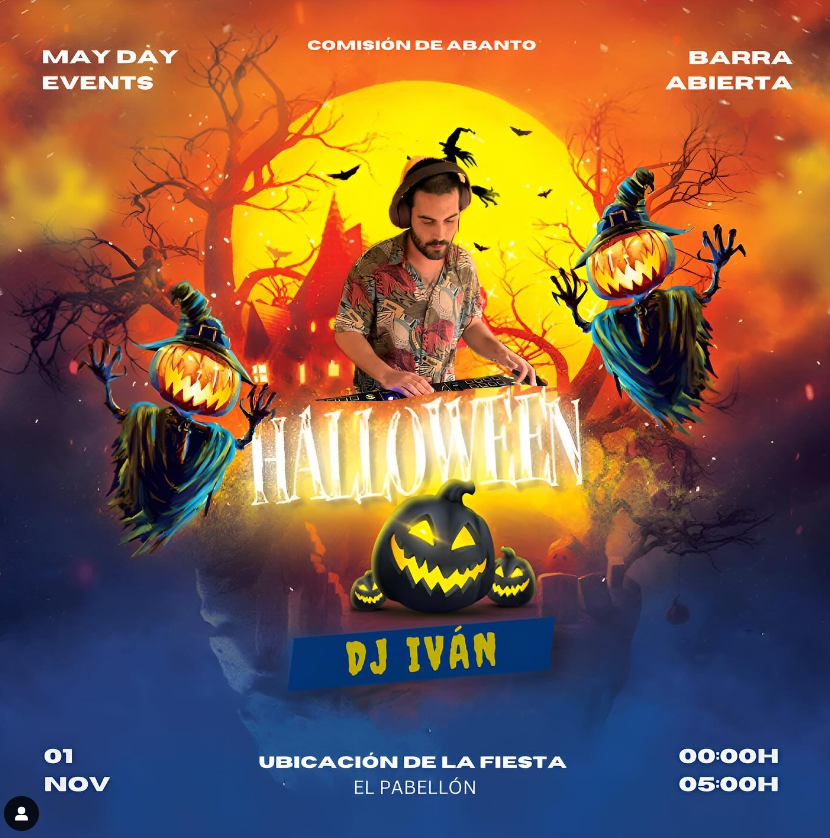 La comisión de fiestas sigue organizando y anunciado los distintos actos que se van a realizar el primer fin de semana de noviembre en Abanto. Además del festival con el pasacalles, las actividades terroríficas, la noche de cine… también tendremos la actuación de DJ Iván.