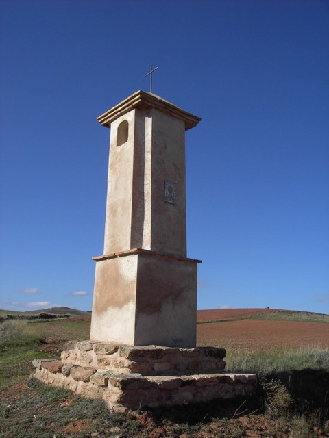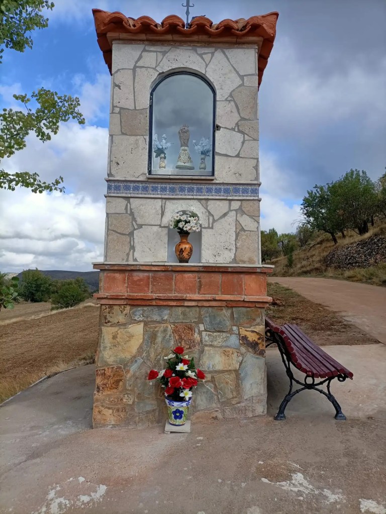 Como decía al principio, en Pardos también tenemos un peirón de la Virgen del PIlar. Está situado en el cruce desde Pardos hacia Acered y Cubel, muy cerca del cementerio.